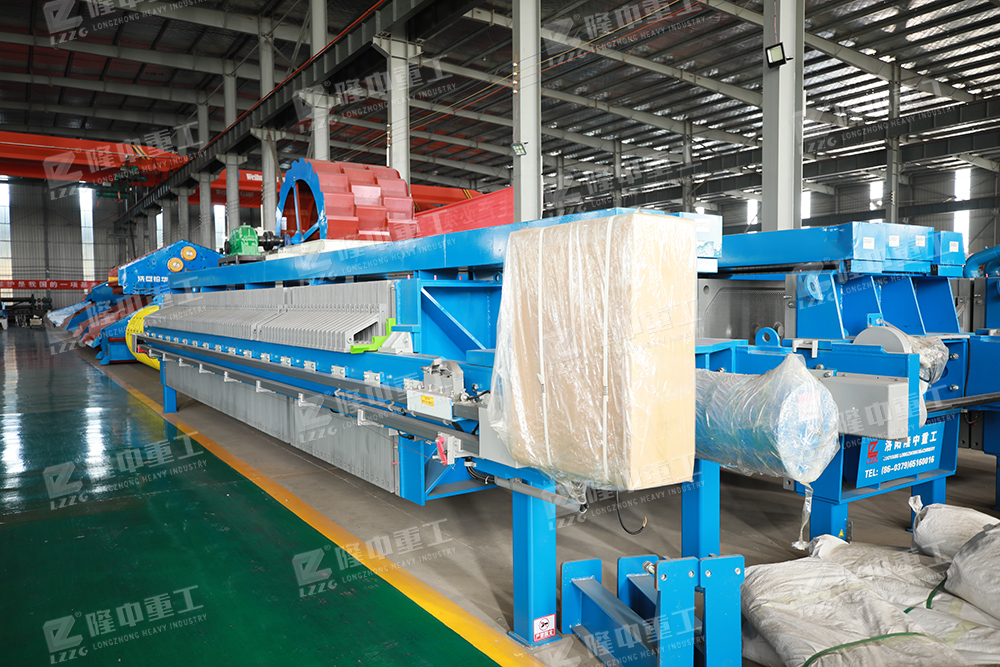 廂式壓濾機(jī)是利用濾布兩邊的壓力差,迫使物料中的J大部分水分透過(guò)濾布,流出機(jī)體外,而物料被阻隔在濾室內(nèi)形成濾餅,以達(dá)到過(guò)濾的目的。由于在過(guò)濾過(guò)程中濾布兩邊存在著較大的壓力差,提高了過(guò)濾速度降低了濾餅的含水率。